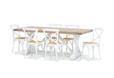 This suite brings together the best of both worlds: the timeless appeal of farmhouse design with the practicality and elegance required for modern living. The natural characteristics of the distressed timber combined with the contemporary two-tone finish make this suite a standout feature in any dining room.