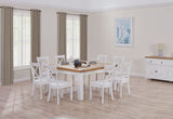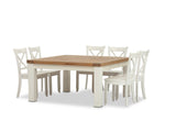 * Comprised of 1x Normandy 1500 Square Dining Table and 8 x Clouds Dining Chairs * Dining Table Design Based off the Classic French Farmhouse Influence with Modern Two-Tone Twist * This Range Features a Unique Cracked Oak Finish and as such you will Notice Natural Surface Cracking of the Oak * Dining Chair Features Combination Rubberwood, Plywood & MDF Construction * Explore the rest of the Normandy Range, Including the 2000 Rectangle Dining Table * Explore the rest of the Normandy Range, Including the 2000 Rectangle Dining Table