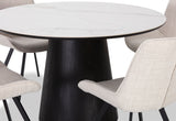 The Thanos 5 Piece Ceramic Dining Suite seamlessly combines contemporary design with luxurious comfort, making it an excellent addition to any dining area. This suite features a uniquely patterned ceramic table complemented by comfortable, elegantly curved chairs.