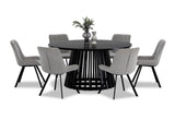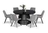 Enhance the charm of your dining room with the Torento 7 Piece Dining Suite, a sophisticated ensemble that effortlessly combines modern aesthetics with timeless elegance. This exquisite set includes the Torento Dining Table in Black paired with six stylish Bordeaux Dining Chairs, creating a captivating centerpiece for your dining space.