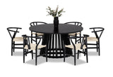 Complete Dining Set: The Torento 7 Piece Dining Suite comprises 1 x Torento Dining Table in Black and 6 x Wishbone Replica MKII Chairs in Black, offering a complete and coordinated solution for your dining room decor.
