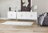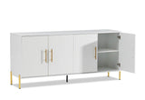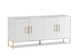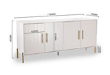 Keep it sleek and modern with the Delgado 4 Door Buffet. This contemporary design is guaranteed to add a touch of style to any living space. The stylish gold door handles and legs complement the white colouring perfectly, while the fluted panelling detail on the door fronts complete the look. This buffet has four doors, which allows for ample storage to keep your living space neat and organised. The recommended weight limit for this unit is 110kg, with the cupboards holding a maximum of 25kg each.