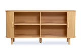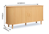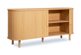 Finished in a warm natural oak colour, this beauty brings a relaxed, modern vibe to any room. Its two tambour doors glide open to reveal four roomy shelves-perfect for stashing dinnerware, board games, or your secret snack stash.