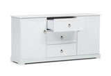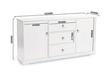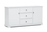 Decorate your living and dining area with practical sophistication and style with the Meadows Buffet. This buffet features classic white cabinetry with contrasting metal ring drawer handles, seemlessly fitting in with elegant, traditional or coastal styling. The Meadows Buffet includes three spacious drawers and two doors providing ample storage space for dinner sets, home bar and other items.