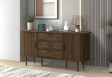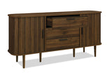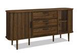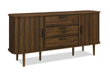 The Nelson Buffet is a sleek and versatile storage piece, offered in Oak and Walnut finishes to suit a range of interiors. With its panelled detailing, gently curved edges, and contrasting black handles, it brings a modern edge to any room. Featuring two smooth sliding doors and three generous drawers, it provides ample space to keep essentials neatly stored. Blending elegance with everyday function, the Nelson Buffet is a refined addition to dining or living areas, enhancing your space with ease. Click here to view Furniture Safety Information