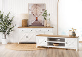 Constructed of MDF & Oak Veneer: The Normandy Buffet is built from high-quality materials, featuring a durable MDF base paired with an oak veneer top. The cracked oak-coloured top adds a unique, rustic character, while the white painted body brings a fresh, clean look that complements various decor styles.
