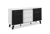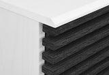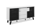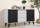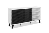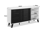 The Pope Buffet is a sleek and stylish storage solution, available in black and white monochrome styling to complement modern interiors. Featuring a trendy slatted design feature, it brings texture and elegance to any space. The two sliding doors open smoothly, revealing spacious storage compartments, perfect for organizing dining essentials. Three drawers offer additional storage for smaller items. Supported by sturdy black legs with a central support leg, the Pope Buffet ensures durability and stability while maintaining a contemporary aesthetic. Ideal for dining or living areas, it blends functionality with timeless style. Click here to view Furniture Safety Information