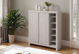 Featuring two spacious doors and open shelves, this piece provides ample space for organising essentials while displaying décor.