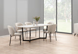 Preeda 1800 Dining Table: Modern Sophistication with Striking Contrast The Preeda 1800 Dining Table brings a contemporary and elegant touch to any dining space. With a high-gloss finish and distinctive metal legs, this table is designed to be both stylish and functional. Key Features: White High Gloss Finish: The glossy table top offers a clean, modern aesthetic that enhances the look of any dining room. Sophisticated Tapered Edge Design: The table top features a refined tapered edge, adding a touch of sophistication to its modern style. Black Powder-Coated Metal Legs: The contrasting black legs are powder-coated for durability and create a bold visual statement against the white top. Quality Construction: Built from durable materials, ensuring stability and long-lasting use. The Preeda 1800 Dining Table combines contemporary design with functional elegance, making it a perfect choice for modern dining areas. Its high-gloss finish and contrasting black legs provide a chic focal point for any meal or gathering. For added peace of mind, click here to view Furniture Safety Information. Visit your nearest store to experience this in person.