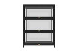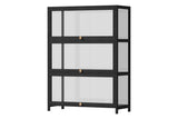 Oikiture Display Cabinet 3-Tier Shelves(Black)
