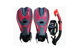 4pc Oz Ocean Abrolhos Outdoor Swimming Goggles Mask Snorkel Fin Set L-XL Red BLK