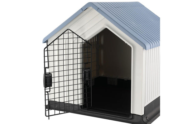 Zoomies Pet House With Iron Gate - White & Blue Roof