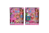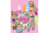 Steffi and Evi with rabbits or dogs in play set, 29cm, 12cm, WINDOW BOX