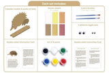 Set includes everything you need to know to build and design your own wooden model, plus a double-sided bonus information card with fun, easy-to-understand facts that inform, inspire, and make learning fun! This fun and engaging set has everything you need to build your own model, with 2 wooden animal shapes that slot onto a sturdy wooden base. Bring your model to life with 6 paints and 2 brushes to choose from, then turn the shapes over to create colourful indigenous-inspired dot art with stickers. Don’t forget to add joggle eyes too, for a finishing touch! When you are done use the inside of the box to place your creatures in a fun Australian scene, then link your model to others in the range.