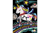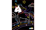 The amazingly brightly coloured scratch art by AVENIR is sure to keep little ones entertained. Scratch the special black paper to create 4 magic unicorns. Set includes scratch sheets and a special scratch tool.