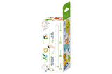 The mini coloring set contains a coloring book on a 2m roll, 4 bean-shaped crayons and 20 stickers. The eco crayons are made of 10% beeswax and their packaging is made of FSC paper. They do not leave stains.