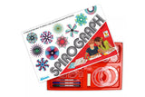 Includes 19 Spirograph® Precision Wheels, 2 Spirograph® Precision Rings, 1 Spirograph® Precision Rack , .17 oz. (5g) of Reusable Spirograph® Putty, 3 Design Pens, 14-Page Guide Book, 20 Sheets of Design Paper and one storage tray. This reproduction of the classic set features all the iconic wheels and rings of the original in a retro, throwback package!