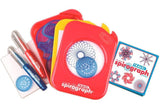 Now you can create countless amazing designs on the go with the classic Travel Spirograph! This portable Spirograph studio has a built-in design ring, work surface and storage compartment for holding your wheels, pens, paper, design guide and finished artwork. The Travel Spirograph is the perfect go anywhere design toy!