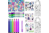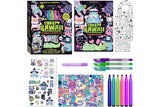 - kit Includes: 64-page coloring book, 3 gel pens, 1 glow-in-the-dark glitter glue, 6 markers, 36 stickers, 15 foil stickers, color-in door hanger, A3 poster.