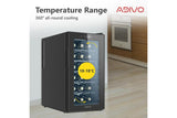 - Thermoelectric Cooling with Dual-Chips System: The ADIVO 18 Bottles Wine Cooler is equipped with advanced thermoelectric cooling and a dual-chips system. This technology ensures efficient and consistent cooling, preserving the quality and taste of your wine collection without the noise or vibration of traditional compressors.