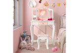 Our lovely vanity set with mirror and stool is a perfect gift for your little one! Featuring a pink and white design with cute zebra print, this makeup dressing table set can be an attractive addition to your little one’s room or play area. The tri-folding mirror with clear reflection allows the little one to adjust the angle flexibly to get a perfect reflection and make up better. What’s more, the mirror is detachable, making the vanity table also suitable for little ones to study or draw. The wide desktop and the large drawer provide ample storage space for little ones’ makeup, jewelry, toys or other items. Made of high quality MDF with non-toxic paint, this vanity set is sturdy and can be used for a long time. In addition, the curved legs with non-slip foot pads provide steady support and protect the floor from scratches. The rounded corner design and anti-toppling device ensure safe use.