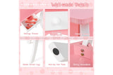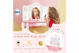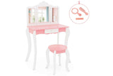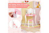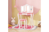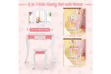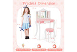 Costway 2-in-1 TOP 50 Bonus Trinkets Set Vanity Table Stool Set Tri-Folding Mirror Makeup Table Princess Dressing Table w/Storage Drawer