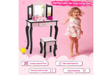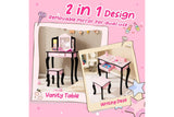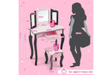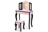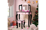 Are you still looking for a cute gift for your little one? If so, our vanity table and stool set is the perfect choice for you! This pretend play vanity set comes with a tri-folding mirror and a matching stool to offer little ones a convenient and enjoyable makeup and dressing up experience. More importantly, the dressing table can be used as a writing desk after removing the mirror, which can meet various needs for both entertainment and study. Made of selected MDF material and supported by 4 curved legs, this vanity set is super stable and durable. Besides, the bottom anti-slip foot pads enhance overall stability and also protect the floor from scratching. The burr-free edges, round corners and anti-toppling device ensure high security. What’s more, this pink and black vanity set decorated with leopard print will be an appealing addition to your little one’s bedroom or play area, bringing great fun for little ones.