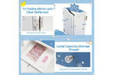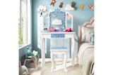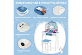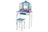 Costway Dressing Table Vanity Table & Stool Set Princess ren Gift Furniture Blue