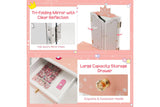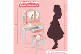 Costway Tri-Folding Mirror Vanity Table Writing Desk Durable Bedroom Furniture Pink