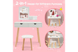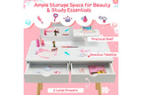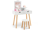 Giantex 2-in-1 Kids Vanity Table & Stool Set Makeup Dressing Table Princess Pretend Playset w/Removable Mirror & Drawer White
