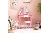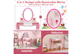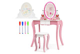 Giantex 2-in-1 Kids Vanity Table Stool Set Rotatable Mirror Makeup Table Princess Dressing Table w/Whiteboard & 4 Markers & Drawer