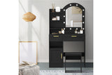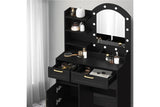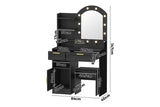 Oikiture Dressing Table Stool Set 12 LED Bulbs (Black)