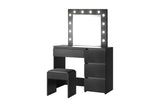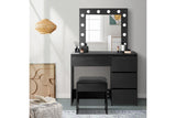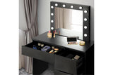 Oikiture Dressing Table Stool Set 12 LED Bulbs(Black)