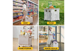 Viviendo Folding Shopping Trolley Portable Grocery Cart Rolling Wheel with Sliding Cover - White