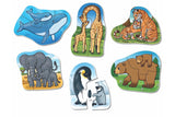 Six large, 2-piece jigsaw puzzles for age 18 months and over,perfect to introduce your child to jigsaw puzzles. Featuring a range of animals such as penguins, giraffes, bears, whales, tigers and elephants.