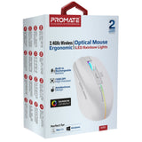 Promate KITT.WHT Ergonomic Wireless Optical Mouse with LED Rainbow Lights & 500mAh