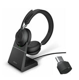 Jabra Evolve2 65 Bluetooth On-Ear Active Noise Cancelling Headset with Charging Stand - Teams Certified