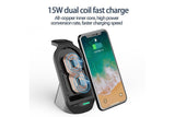 15W 3-in-1 Qi Fast Wireless Charger - (Black)