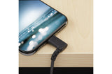 This angled USB to Lightning cable withstands the demands of charging and syncing your mobile devices. Tested for strenuous wear and tear, the Lightning cable’s angled connector gives you easy access to your mobile device even while charging.