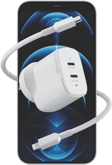 With enough power to charge everything from phones and tablets to laptops, it's the perfect charger for home, office and travel. The dual USB-C ports pump out a massive 40W of power, letting you rapidly charge two devices simultaneously. Rejuvenate your phone battery from 0 to 50% in just 30 minutes. Or power up your MacBook Air to 50% in only 30 minutes.