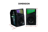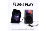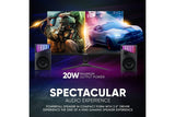 PRODUCT FEATURES Bluetooth v5.3 Low Latency 3.5mm Aux Connection 20 Watts Max Power Side RGB Lighting Effect Master Volume Control 2.5" Driver Size PRODUCT SPECIFICATIONS  Specifications: Driver Size: 2.5" Total Driver: 2 Pure System Power (RMS): 10 Watts Total System Power: 20 Watts Frequency Response: 60Hz - 20KHz Bass Reflex Panel: 75 x 55mm Bluetooth Receiving Distance: < 15m Cable And Jack Specifications: Power Cable: USB 5v/1A Connection Type:  USB Cable for Power Up Speaker 3.5mm 3 Step for Audio