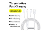 Baseus Superior Series Fast Charging Data Cable USB To M+L+C 3.5A 1.5m - White