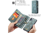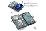 CaseMe For Apple iPhone 13 Pro Zipper & Detachable Retro Leather Pouch Wallet Flip Purse Bag Detachable Phone Case Cover (Sky Blue)