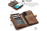 CaseMe For Samsung Galaxy S22 Zipper & Detachable Retro Leather Pouch Wallet Flip Purse Bag Detachable Phone Case Cover (Brown)