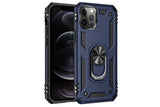For Apple iPhone 12 Pro Case, Military Grade 360 Degree Rotating Metal Magnetic Ring Car Mount Holder Kickstand Shockproof Heavy Duty Cover (Navy Blue)