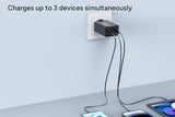 With dual USB-C ports, an additional USB-A QC3.0 port and the ability to charge up to 3 devices simultaneously, this charger offers unparalleled connectivity and flexibility. With intelligent power distribution management, you can expect optimal charging speed every time. Whether you’re on the go or need a convenient way to charge all your devices in one place, this versatile charger is here for you.