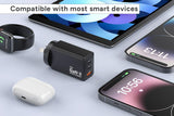 Say goodbye to bulky chargers and hello to ultimate portability. With a size roughly that of an AirPods Pro case, this charger can easily fit into your pocket or bag without taking up much space. This compact design offers seamless charging for up to 3 devices at once, making it perfect for anyone on the move.