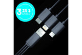 Charging cable with 3 popular connectors included: Lightning, USB-C, Micro USB