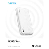 Momax iPower 10000mAh Fast Charging PD Power Bank - Black, 20W USB-C PD 3.0 Output + Dual USB-A Output, Fast Charing Apple iPhone & Samsung Smart Phones, LED Power Indicator