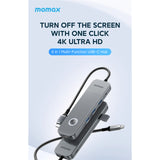 Momax USB-C 6 in 1 100W Power Delivery Hub Spacy Grey Support 100W PD3.0 Fast Charing, USB3.2 Gen1 High-speed transmission, 1x USB-C, 3x USB-A, 1x (4K 60Hz)HDMI